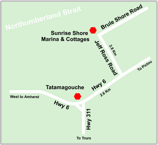 You can find us by driving the beautiful Sunrise Trail, Highway 6 that borders the north shore of Nova Scotia.